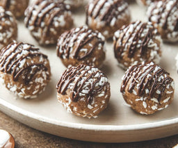 Almond Joy Energy Bites are what happens when your favorite candy bar goes Kodiak mode. These no-bake, grab-and-go bites taste like dessert but work just as hard as you do. Made with rich almond butter, sweet Medjool dates, and shredded coconut—all blended with Kodiak’s Chocolate Chip Protein Ball Mix—they’re hearty, satisfying, and ready to fuel everything from trail breaks to after-school chaos. Each bite is crafted with 100% whole grains and protein, with a drizzle of dark chocolate to top it all off. It's the real good-for-you stuff… with a wild little wink of indulgence (because your favorite candy bar just grew up).