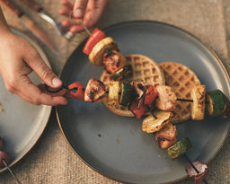 A classic twist on chicken and waffles is comin’ in hot with these camping kabobs. Whether you’re planning your next meal in the mountains or firing up the grill for a backyard barbecue, these chicken and veggie waffle kabobs are a fan favorite for those that crave savory and sweet bites.