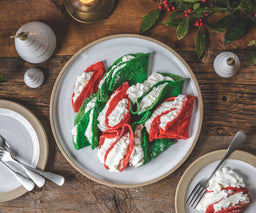Kodiak Kitchen’s Rule: The festivities can’t begin until you and your fam have a Colorful Christmas Crepe. So, grab your Kodiak ® Buttermilk Power Cakes®, a dash of food coloring, and a few other goodies and whip up a festive holiday breakfast. We're talking the cozy taste of classic flapjacks, but thin, colorful, and ready to be loaded up with all the good stuff — think Nutella, strawberries, bacon, or whatever hits the spot!