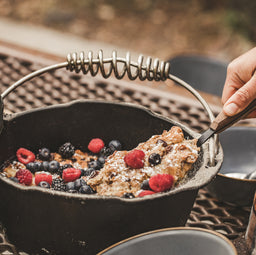 Fresh fruit from grandma’s garden soaked in warm, Kodiak Thick & Fluffy Buttermilk & Vanilla Frozen Waffles (defrosted), butter and heavy cream mixed in…what sounds better than this bread pudding? Oh yeah, cooking it in a Dutch oven. Whether you’re bringing the cabin vibes in your city home, or you’re in the mountains at a family reunion, whip up this country dessert favorite for all to enjoy.