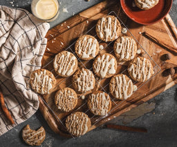 No punch bowl? No problem! Get your eggnog fix fresh out of the oven with these Gluten-Free Eggnog Cookies. The combination of Kodiak® Gluten-Free Frontier Oat Flapjack & Waffle Mix and a splash of eggnog gives these cookies a soft, chewy texture with just the right amount of holiday spice. Top them off with a sweet eggnog icing and a sprinkle of nutmeg for the ultimate festive treat. Whether you're baking for a holiday party or just craving something cozy, these cookies are sure to hit the spot.