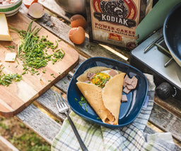 1. In a large bowl, whisk together milk, eggs and melted butter. Add Kodiak mix and combine.