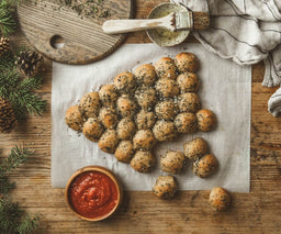 6. Place the cheese-filled dough balls on the parchment-lined baking sheet in the shape of a Christmas tree.