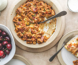 An unforgettable weekend starts with breakfast (as it should), and our Savory Breakfast Bread Pudding recipe packs in the good stuff, starting with protein and whole grains from Kodiak® Buttermilk Power Waffles. This hearty breakfast is layered with melted cheddar cheese and crispy bacon and topped with fresh chives for a burst of flavor. And, as always, Kodiak waffles provide a hearty base, while the melted cheddar cheese adds a creamy, comforting layer that’s perfectly complemented by the smoky, salty crunch of crumbled bacon. It's a delicious way to start the day, and leaves everyone at the table satisfied and smiling.